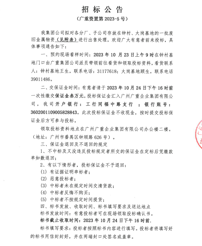 废旧金属物资处置(乐鱼(中国)一站式服务平台资置2023-5号)