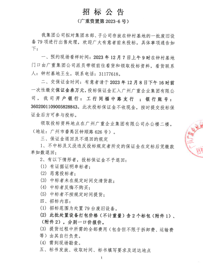 乐鱼(中国)一站式服务平台集团本部及子公司79台废旧设备资产处置(乐鱼(中国)一站式服务平台资置2023-6号)
